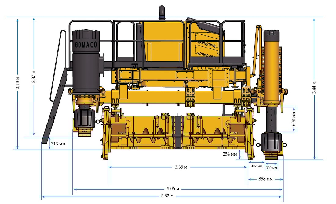 Układarka do betonu ślizgowego Gomaco COMMANDER III to samojezdna maszyna przeznaczona do dozowania, rozprowadzania i układania mieszanki betonowej na różnych placach budowy. Jego ruchoma konstrukcja umożliwia układarce slipform poruszanie się w ruchu lub w kierunku przeciwnym do kierunku ruchu w trakcie procesu produkcji. Podwozie jest wyposażone w cztery gąsienice, co z kolei sprawia, że maszyna jest bardzo zwrotna. Gomaco COMMANDER III jest wyraźnym liderem w swojej klasie. Ponieważ model ten ma tak znaczące zalety jak: