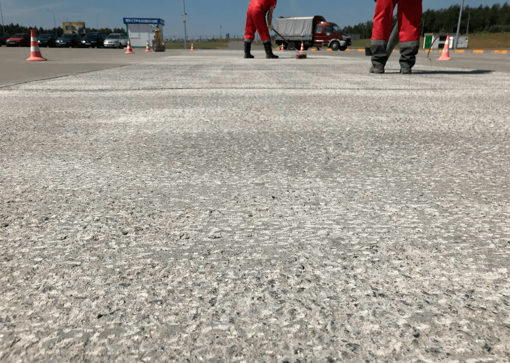 Przy głębokości łuszczenia do 10 mm zaleca się wstępne wyrównanie nawierzchni przez frezowanie specjalną maszyną, a następnie wzmocnienie betonu specjalną kompozycją hydrofobową za pomocą impregnacji.