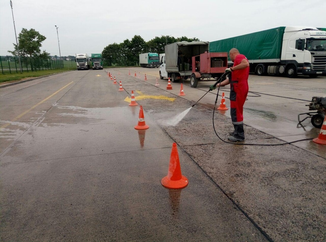- Mechaniczne czyszczenie powierzchni. Wykonuje się w miejscach o dużym zanieczyszczeniu za pomocą szczotki samochodowej myjki ciśnieniowej i wysokociśnieniowego strumienia wody. Wszystkie zanieczyszczenia, takie jak: mleko cementowe, plamy od materiałw łatwopalnych, ślady gumy, szpachli, farb należy całkowicie usunąć, ponieważ wpływają na przenikalność materiału. Przygotowanie mechaniczne służy nie tylko do usuwania zanieczyszczeń, ale także do otwierania porów, co zapewni lepszą penetrację kompozycji do korpusu betonu.