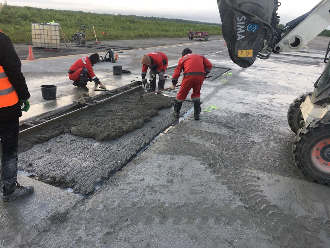 Następnie odbywa się ładowanie gruzu budowlanego, czyszczenie z resztek betonu, odpylanie sprężonym powietrzem i obróbka powierzchni strumieniem wodnym. W razie potrzeby wykonuje się urządzenie miękkie szalunkowe w miejscach połączeń i pęknięć. Następnie przygotowuje się mieszaninę naprawczą. Często stosuje się do naprawy łuszczenia szybkoschnące suche mieszanki bez skurczu zawierające włókno polimerowe i stalowe do napraw konstrukcyjnych konstrukcji żelbetowych narażonych na obciążenia dynamiczne.